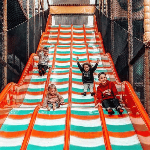 Classic indoor soft play with climbing walls. Perfect for rainy day energy burn.