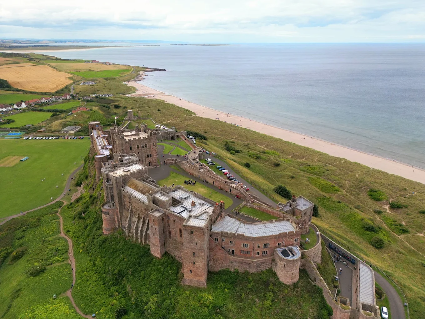 Perched dramatically on a rocky outcrop overlooking the North Sea, Bamburgh Castle is one of England’s most iconic coastal fortresses.